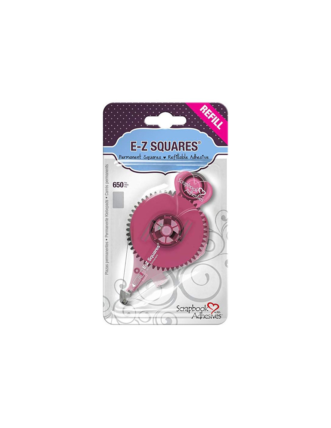 Comodo applicatore ricaricabile che distribuisce piccoli punti bi-adesivi contigui e separati.